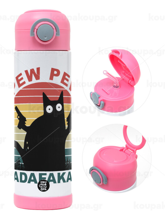 PEW PEW madafakas, Easter candle, Childrens hot water bottle, stainless steel, with safety straw, PINK (500ml)