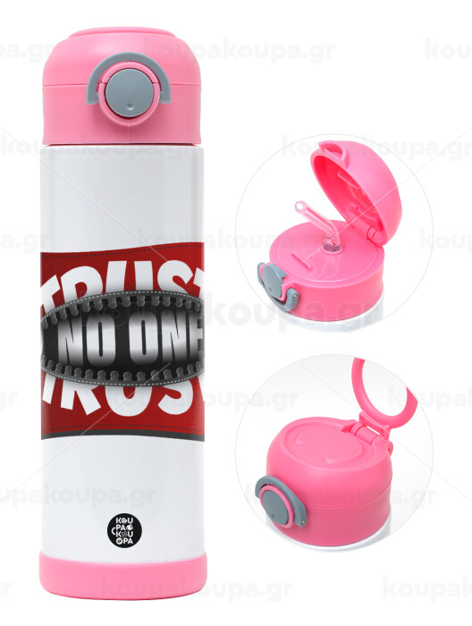 Trust no one... (zipper), Easter candle, Childrens hot water bottle, stainless steel, with safety straw, PINK (500ml)