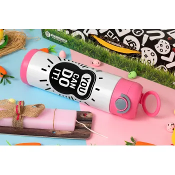 You can do it, Easter candle, Childrens hot water bottle, stainless steel, with safety straw, PINK (500ml)