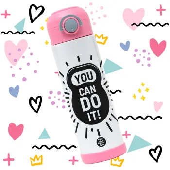 You can do it, Easter candle, Childrens hot water bottle, stainless steel, with safety straw, PINK (500ml)