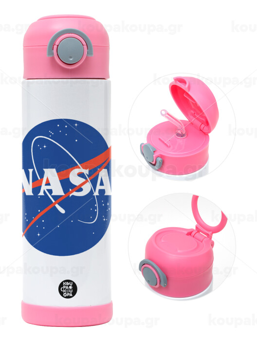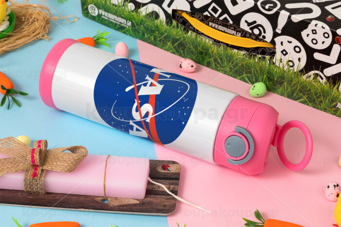 Nasa, Easter candle, Childrens hot water bottle, stainless steel, with safety straw, PINK (500ml)