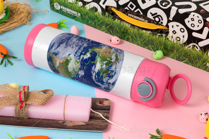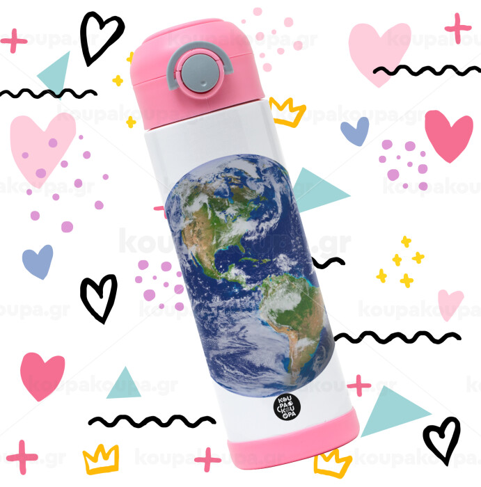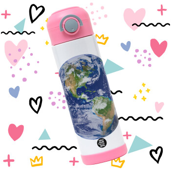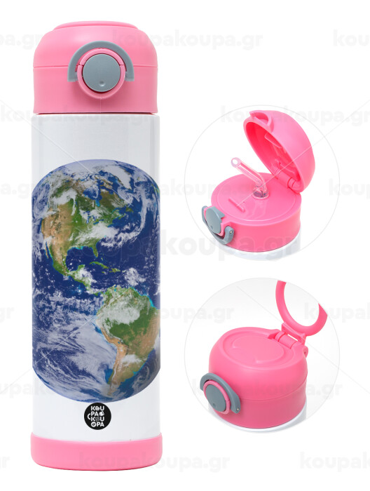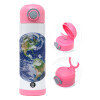 Planet Earth, Easter candle, Childrens hot water bottle, stainless steel, with safety straw, PINK (500ml)