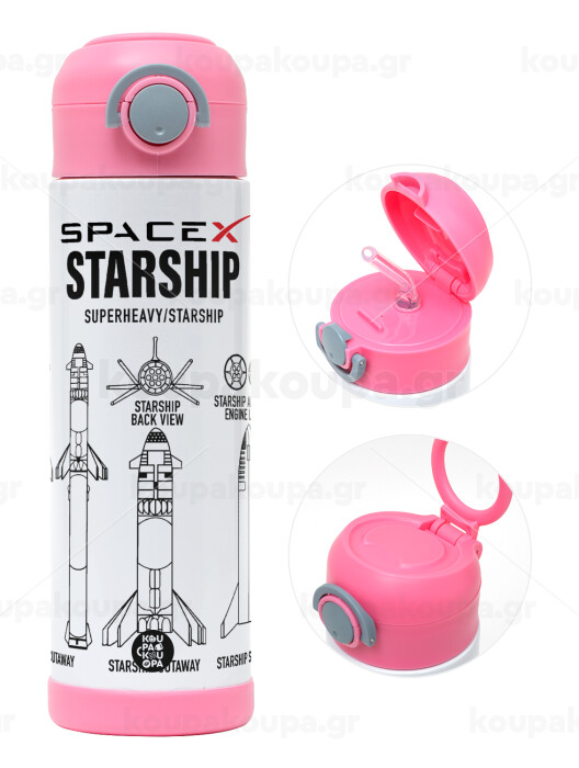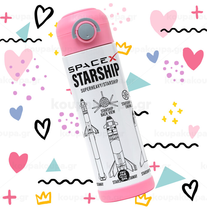 Space X, Easter candle, Childrens hot water bottle, stainless steel, with safety straw, PINK (500ml)