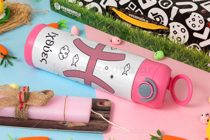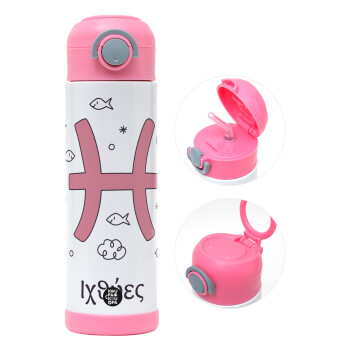 Ζώδια Ιχθύες, Easter candle, Childrens hot water bottle, stainless steel, with safety straw, PINK (500ml)