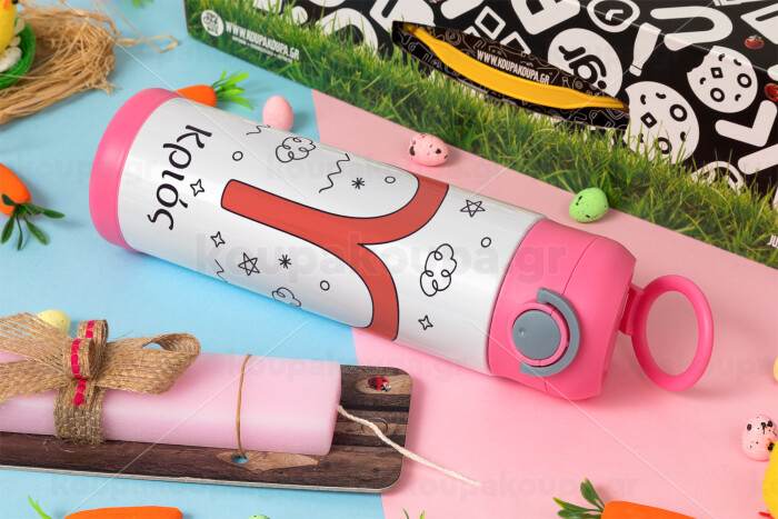 Ζώδια Κριός, Easter candle, Childrens hot water bottle, stainless steel, with safety straw, PINK (500ml)