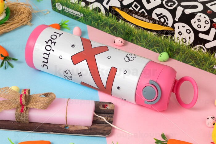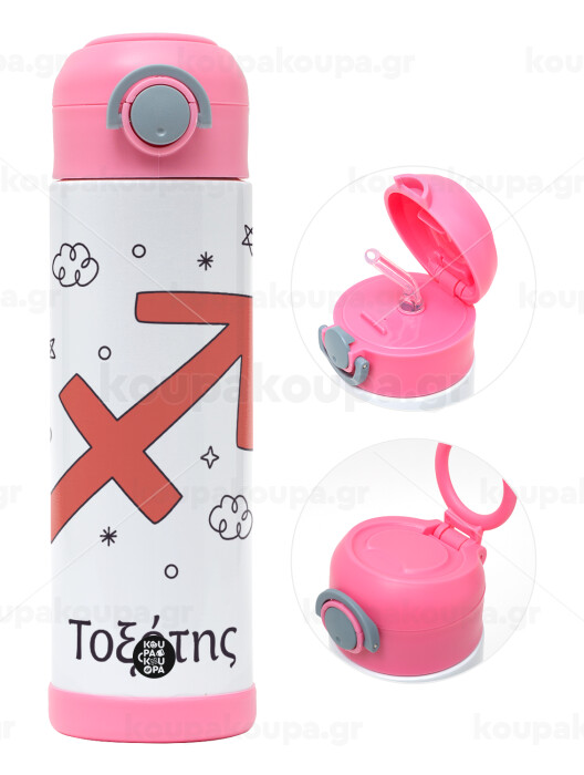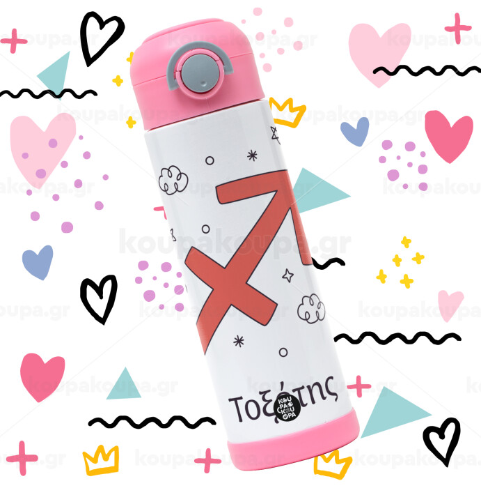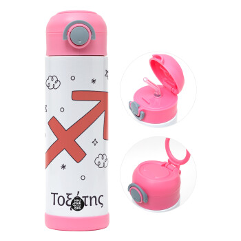 Ζώδια Τοξότης, Easter candle, Childrens hot water bottle, stainless steel, with safety straw, PINK (500ml)