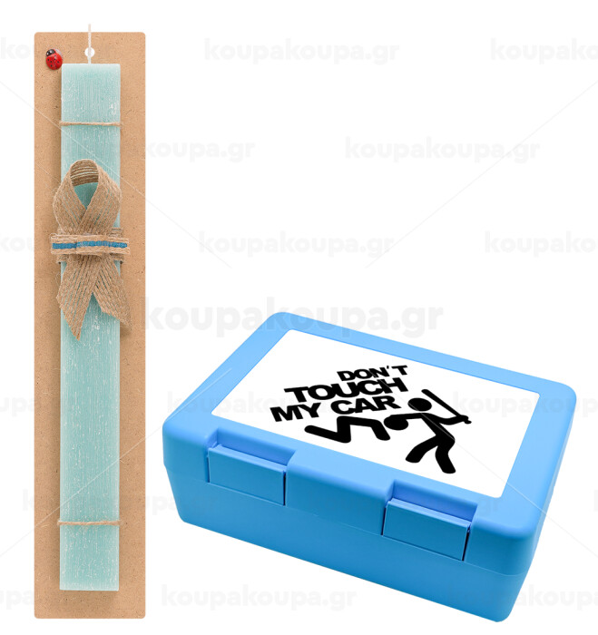 Don't touch my car, Easter Set, children's snack container BLUE & Easter aromatic flat candle (30cm) (TURQUOISE)