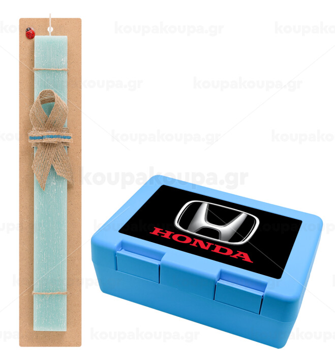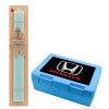 HONDA, Easter Set, children's snack container BLUE & Easter aromatic flat candle (30cm) (TURQUOISE)
