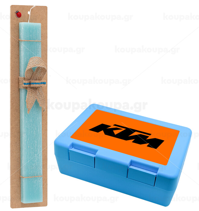 KTM, Easter Set, children's snack container BLUE & Easter aromatic flat candle (30cm) (TURQUOISE)