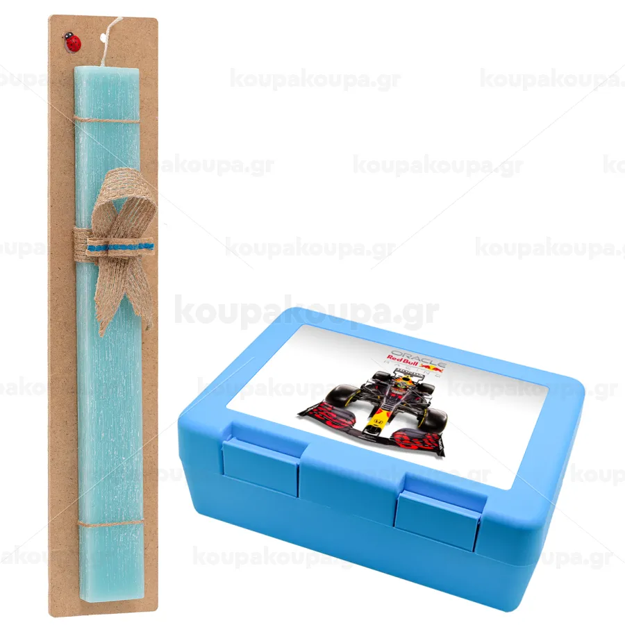 Redbull Racing Team F1, Easter Set, children's snack container BLUE & Easter aromatic flat candle (30cm) (TURQUOISE)