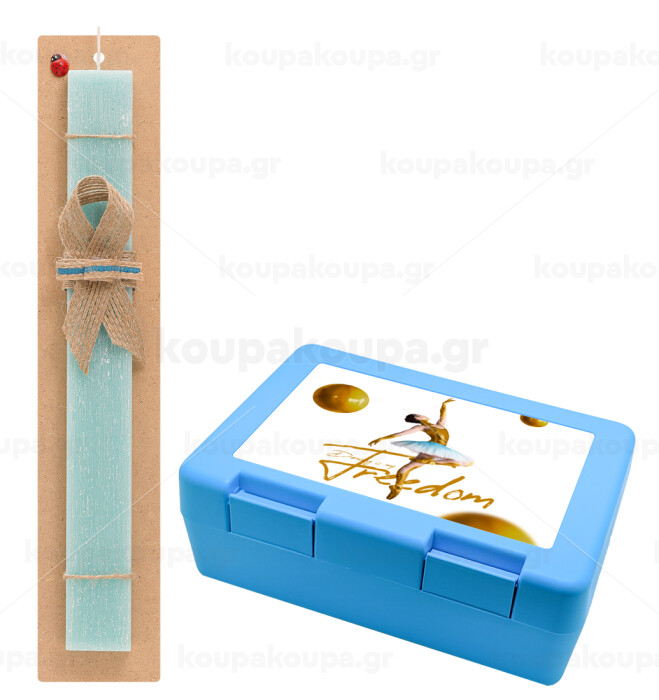 Gold Dancer, Easter Set, children's snack container BLUE & Easter aromatic flat candle (30cm) (TURQUOISE)