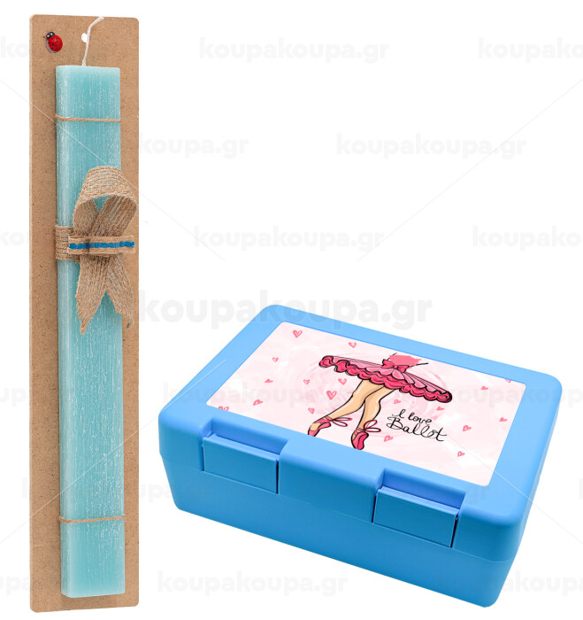 I Love Ballet, Easter Set, children's snack container BLUE & Easter aromatic flat candle (30cm) (TURQUOISE)
