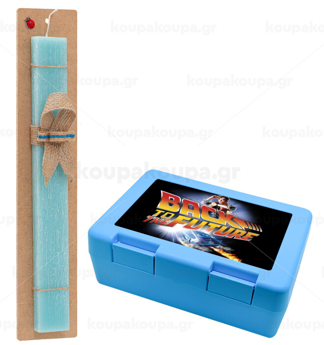 Back to the future, Easter Set, children's snack container BLUE & Easter aromatic flat candle (30cm) (TURQUOISE)