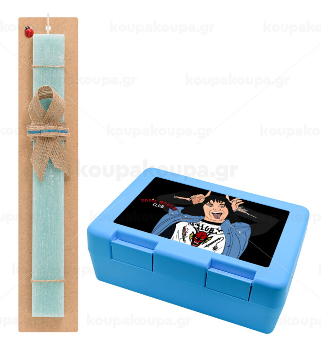 Eddie Munson, Easter Set, children's snack container BLUE & Easter aromatic flat candle (30cm) (TURQUOISE)