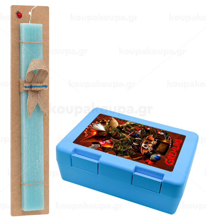Gremlins, Easter Set, children's snack container BLUE & Easter aromatic flat candle (30cm) (TURQUOISE)