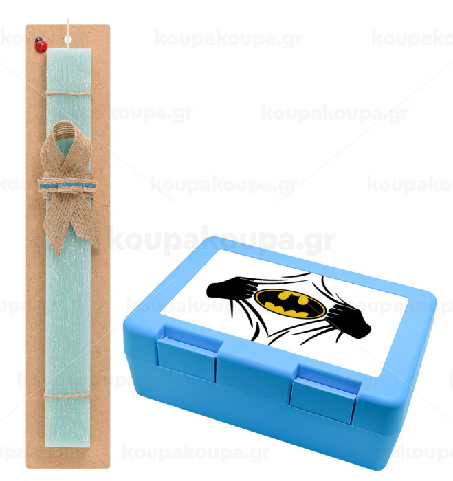 Hero batman, Easter Set, children's snack container BLUE & Easter aromatic flat candle (30cm) (TURQUOISE)