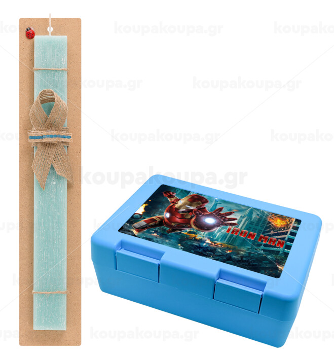 Ironman, Easter Set, children's snack container BLUE & Easter aromatic flat candle (30cm) (TURQUOISE)