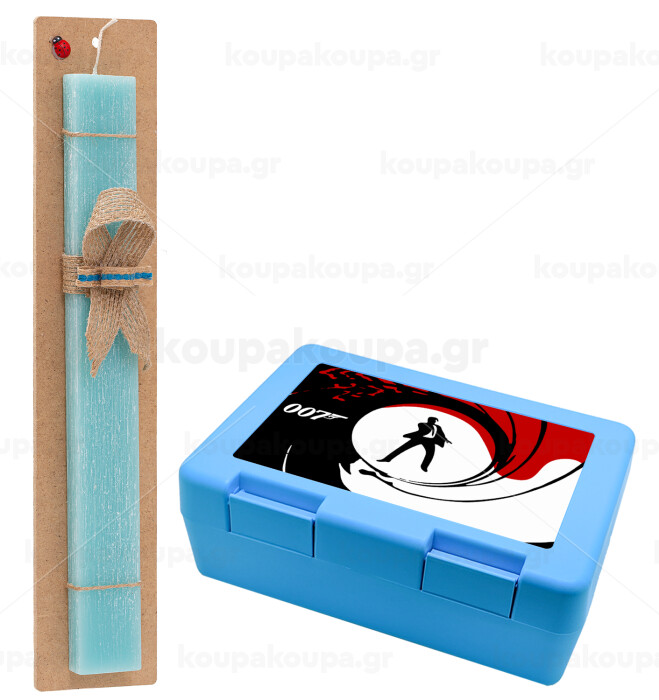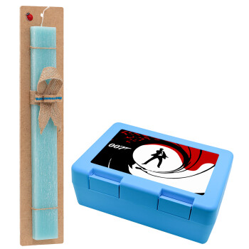 James Bond 007, Easter Set, children's snack container BLUE & Easter aromatic flat candle (30cm) (TURQUOISE)