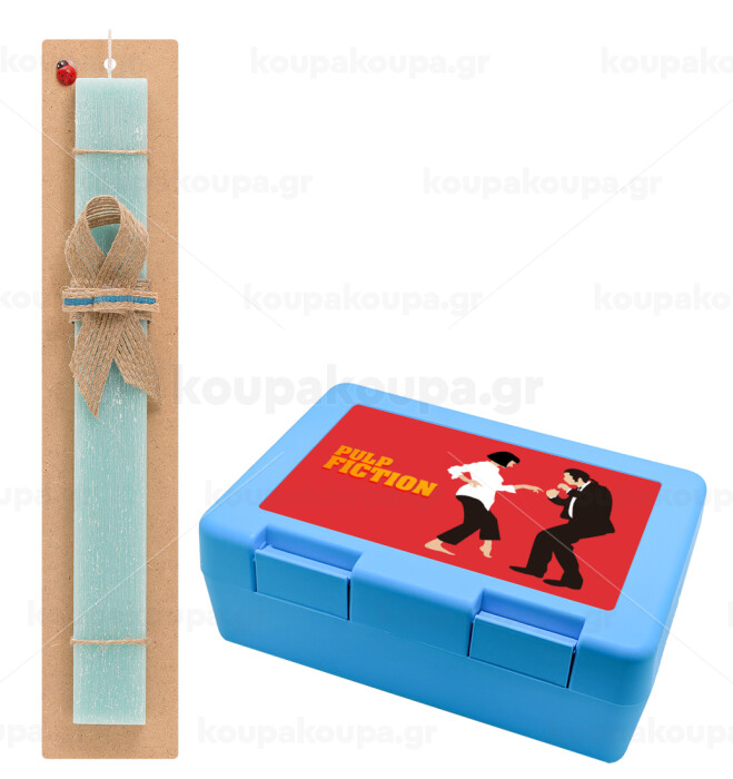 Pulp Fiction dancing, Easter Set, children's snack container BLUE & Easter aromatic flat candle (30cm) (TURQUOISE)