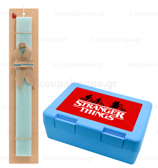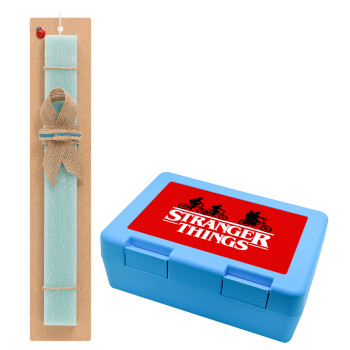 Stranger Things red, Easter Set, children's snack container BLUE & Easter aromatic flat candle (30cm) (TURQUOISE)