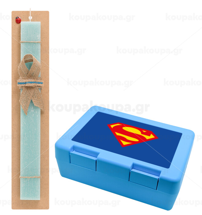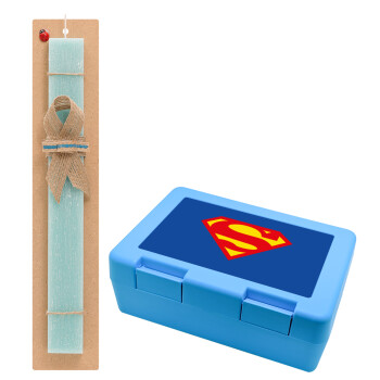 Superman, Easter Set, children's snack container BLUE & Easter aromatic flat candle (30cm) (TURQUOISE)