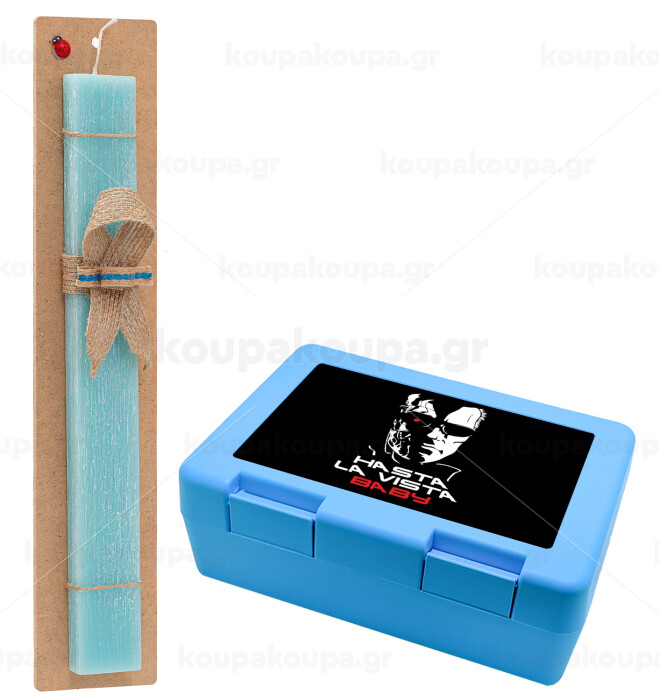 Terminator Hasta La Vista, Easter Set, children's snack container BLUE & Easter aromatic flat candle (30cm) (TURQUOISE)
