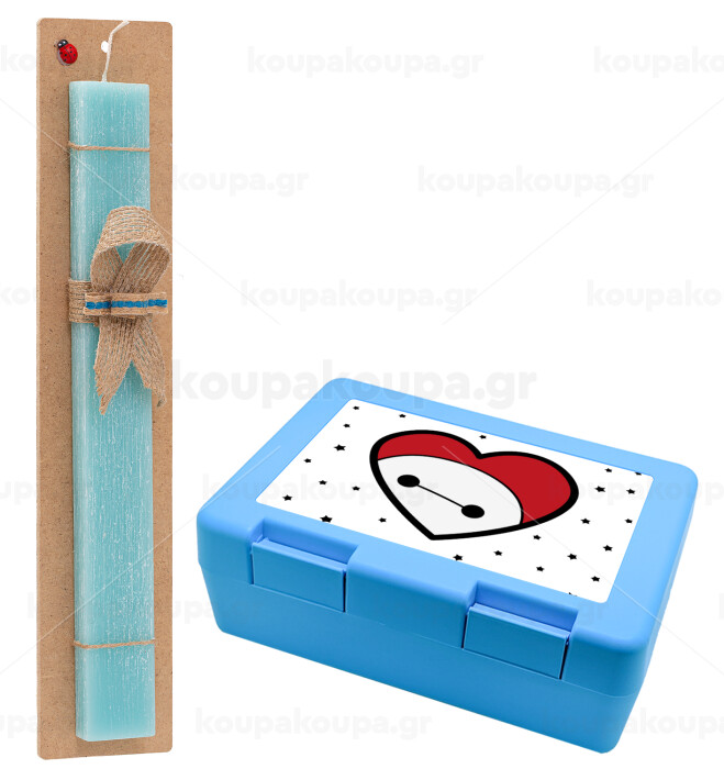 Baymax heart, Easter Set, children's snack container BLUE & Easter aromatic flat candle (30cm) (TURQUOISE)