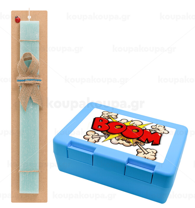 BOOM!!!, Easter Set, children's snack container BLUE & Easter aromatic flat candle (30cm) (TURQUOISE)