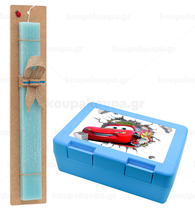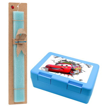 Brick McQueen, Easter Set, children's snack container BLUE & Easter aromatic flat candle (30cm) (TURQUOISE)