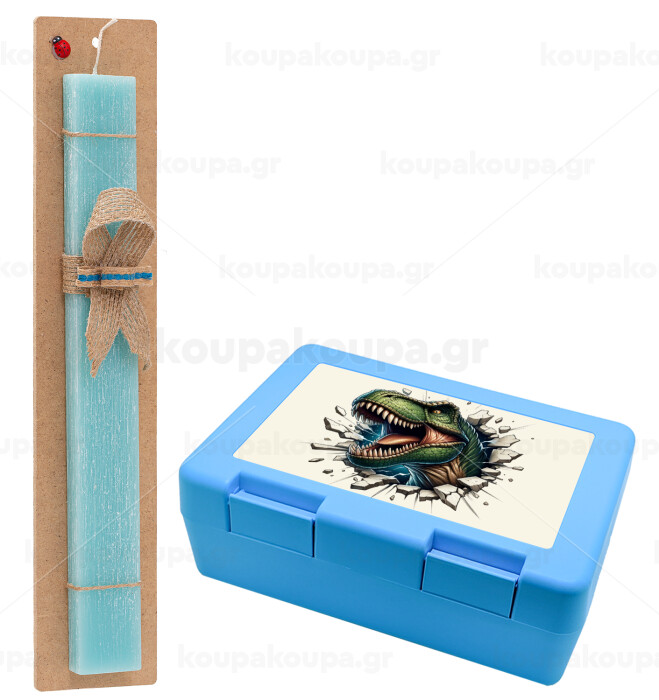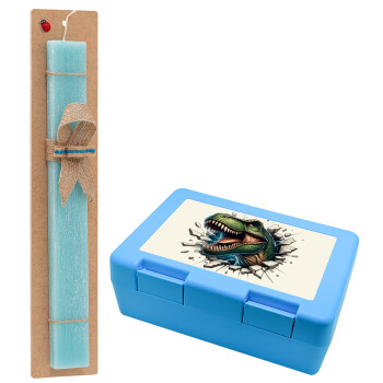 Dinosaur break wall, Easter Set, children's snack container BLUE & Easter aromatic flat candle (30cm) (TURQUOISE)