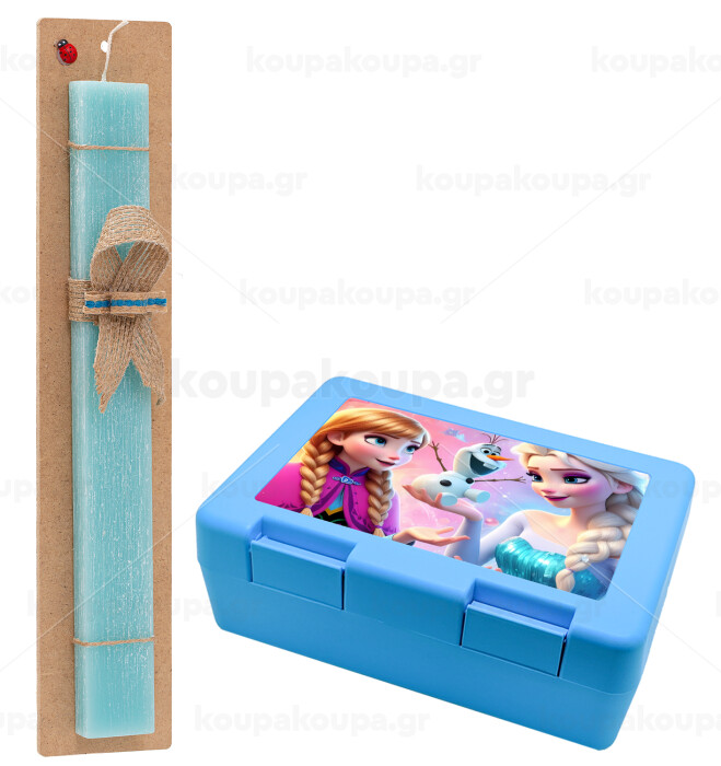 Elsa & Anna Princess, Easter Set, children's snack container BLUE & Easter aromatic flat candle (30cm) (TURQUOISE)