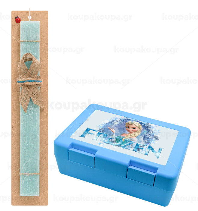 Frozen Elsa, Easter Set, children's snack container BLUE & Easter aromatic flat candle (30cm) (TURQUOISE)