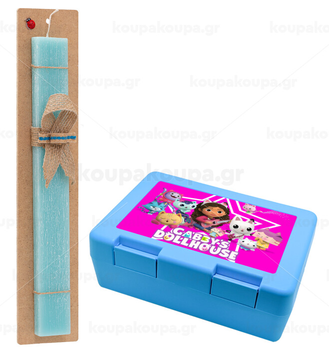 Gabby Dollhouse, Easter Set, children's snack container BLUE & Easter aromatic flat candle (30cm) (TURQUOISE)
