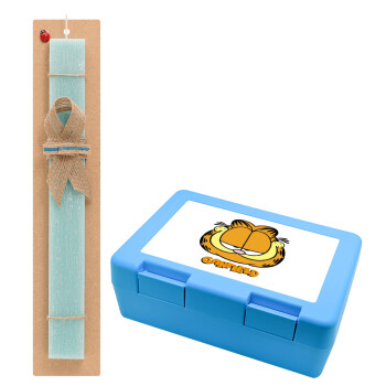 Garfield, Easter Set, children's snack container BLUE & Easter aromatic flat candle (30cm) (TURQUOISE)
