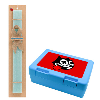 helix the cat, Easter Set, children's snack container BLUE & Easter aromatic flat candle (30cm) (TURQUOISE)