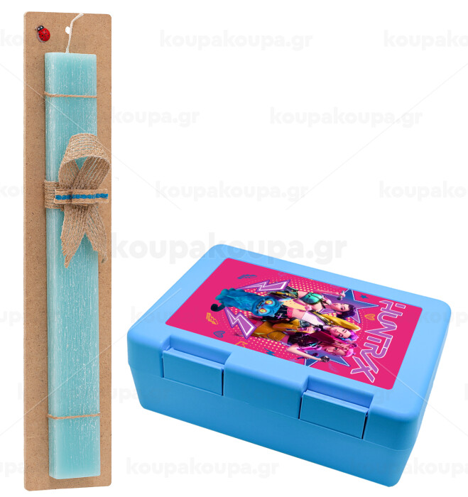 Huntrix K-pop series, Easter Set, children's snack container BLUE & Easter aromatic flat candle (30cm) (TURQUOISE)