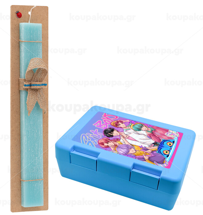 Huntrix Saja Boys, Easter Set, children's snack container BLUE & Easter aromatic flat candle (30cm) (TURQUOISE)