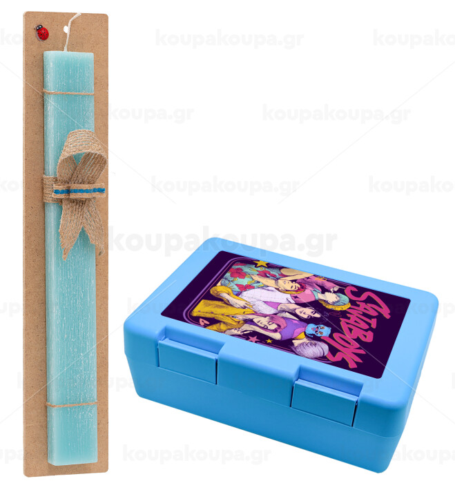 Huntrix Saja Boys, Easter Set, children's snack container BLUE & Easter aromatic flat candle (30cm) (TURQUOISE)