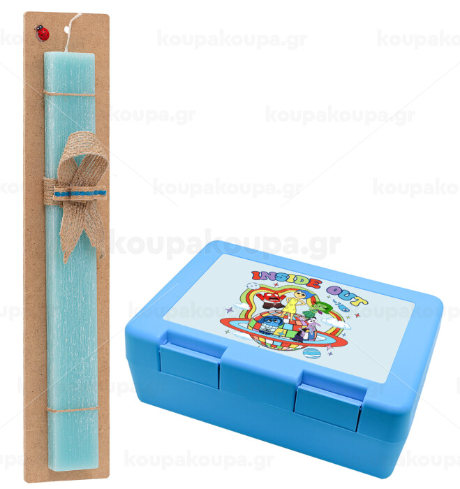 Inside Out, Easter Set, children's snack container BLUE & Easter aromatic flat candle (30cm) (TURQUOISE)