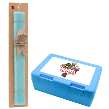 MARVEL, Easter Set, children's snack container BLUE & Easter aromatic flat candle (30cm) (TURQUOISE)