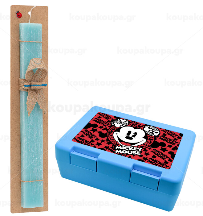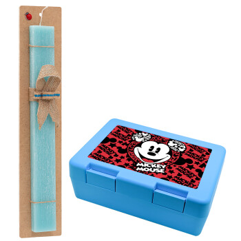 Mickey Mouse, Easter Set, children's snack container BLUE & Easter aromatic flat candle (30cm) (TURQUOISE)