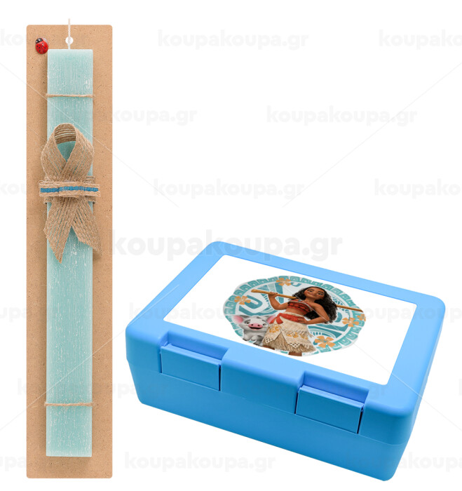 Moana, Easter Set, children's snack container BLUE & Easter aromatic flat candle (30cm) (TURQUOISE)