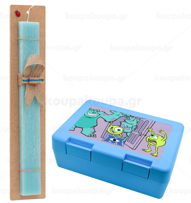 Monster inc, Easter Set, children's snack container BLUE & Easter aromatic flat candle (30cm) (TURQUOISE)