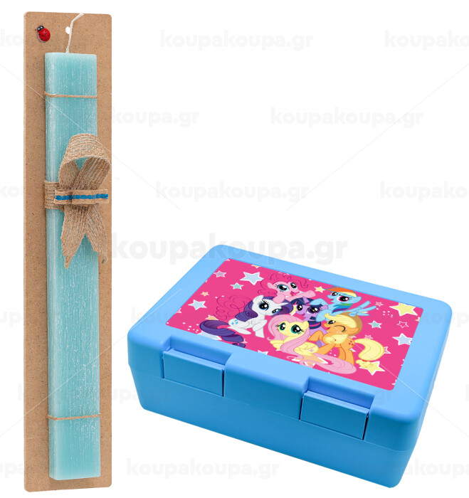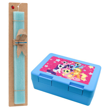 My Little Pony, Easter Set, children's snack container BLUE & Easter aromatic flat candle (30cm) (TURQUOISE)
