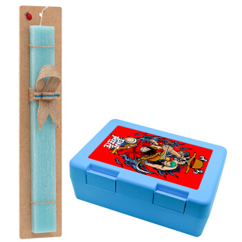 One Piece, Easter Set, children's snack container BLUE & Easter aromatic flat candle (30cm) (TURQUOISE)