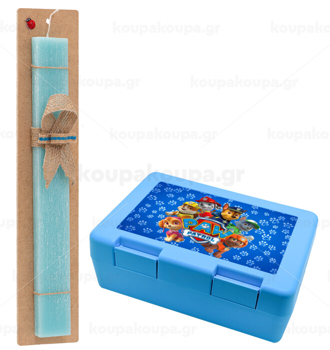 PAW patrol, Easter Set, children's snack container BLUE & Easter aromatic flat candle (30cm) (TURQUOISE)