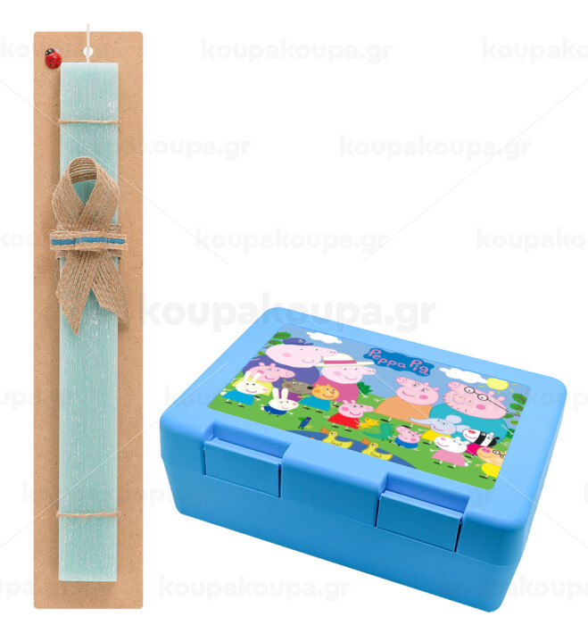 Peppa pig Family, Easter Set, children's snack container BLUE & Easter aromatic flat candle (30cm) (TURQUOISE)