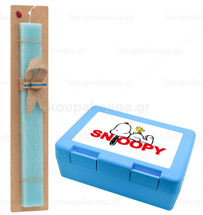 Snoopy sleep, Easter Set, children's snack container BLUE & Easter aromatic flat candle (30cm) (TURQUOISE)