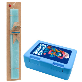 The Smurfs, Easter Set, children's snack container BLUE & Easter aromatic flat candle (30cm) (TURQUOISE)