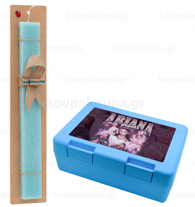Ariana Grande, Easter Set, children's snack container BLUE & Easter aromatic flat candle (30cm) (TURQUOISE)